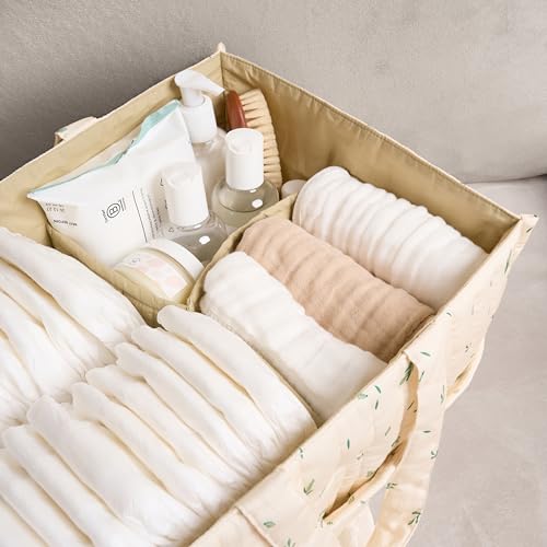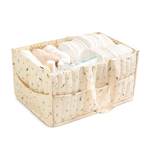 Beau & Bloom Nappy Caddy – Organic Cotton Fabric, Extra Large – Fits a Whole Pack of Nappies, Baby Caddy Organiser, For Newborn Essentials, Baby Wipes, and More.