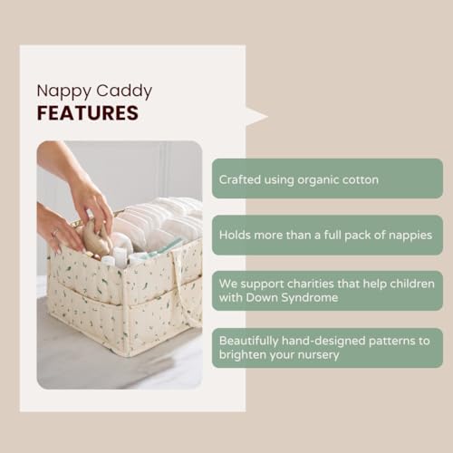 Beau & Bloom Nappy Caddy – Organic Cotton Fabric, Extra