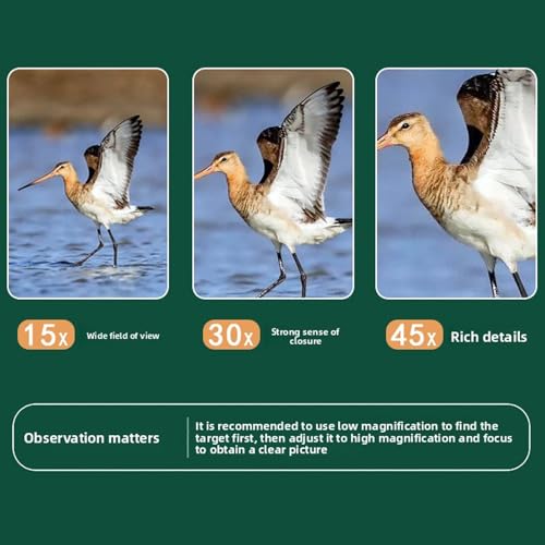- ADJUSTABLE MAGNIFICATION: 15-45X continuous zoom allows for easy adjustment of magnification, suitable for various distances and observation needs, offering flexible in switching between near and far views.
