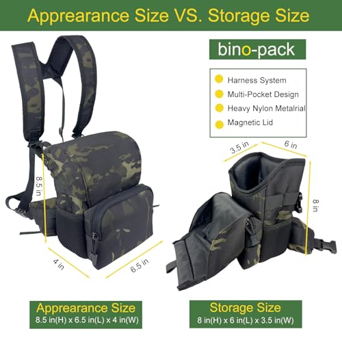 Binocular Harness Chest Pack – Lightweight Bino Harness with Rangefinder Pouch |Rain Cover Binocular Case with Silent Magnetic Closure and MOLLE System for Hunting, Birdwatching, and Hiking