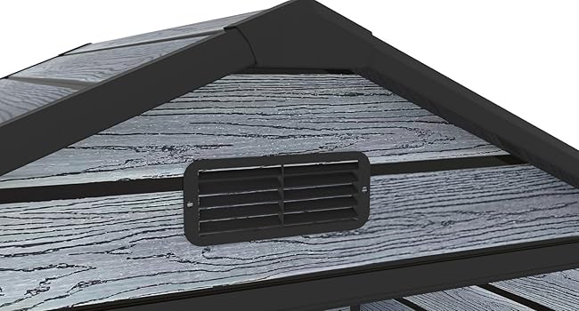 - Lockable Door Handles: For added security, the door comes with handles featuring padlock eyes (padlock not included), giving you a reliable locking mechanism to safeguard your garden equipment in this plastic garden shed.