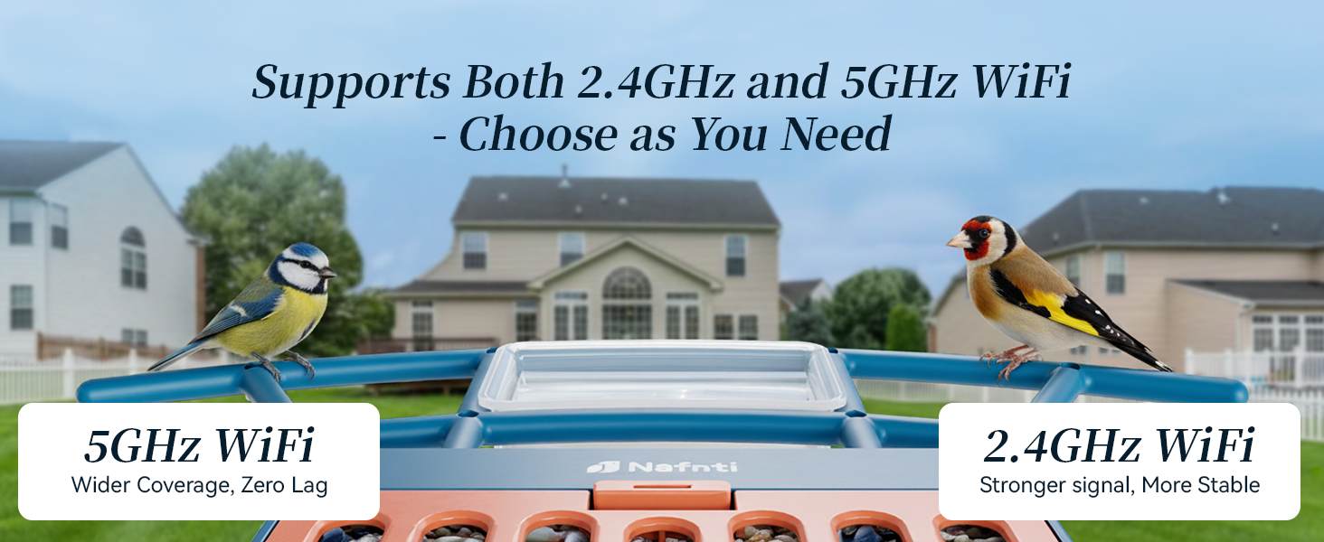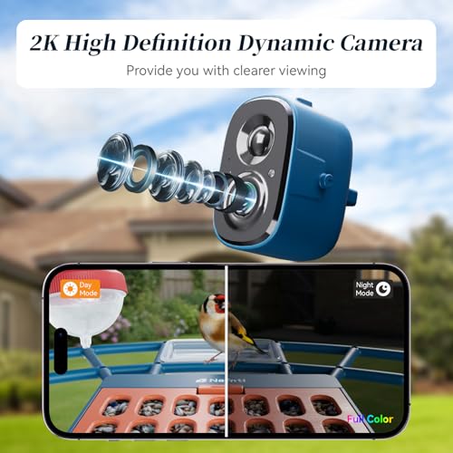 【2.4GHz/ 5GHz Wifi & 2K Live View Camera 】Nafnti technology is newly upgraded, we support 2.4GHz and 5GHz, don't worry about connectivity anymore! With a 160° wide-angle lens and color night vision, birdwatching with a wider field of view and works both day and night, Even in low-light conditions, bird camera also ensures clear and vivid live broadcasts, images and videos.