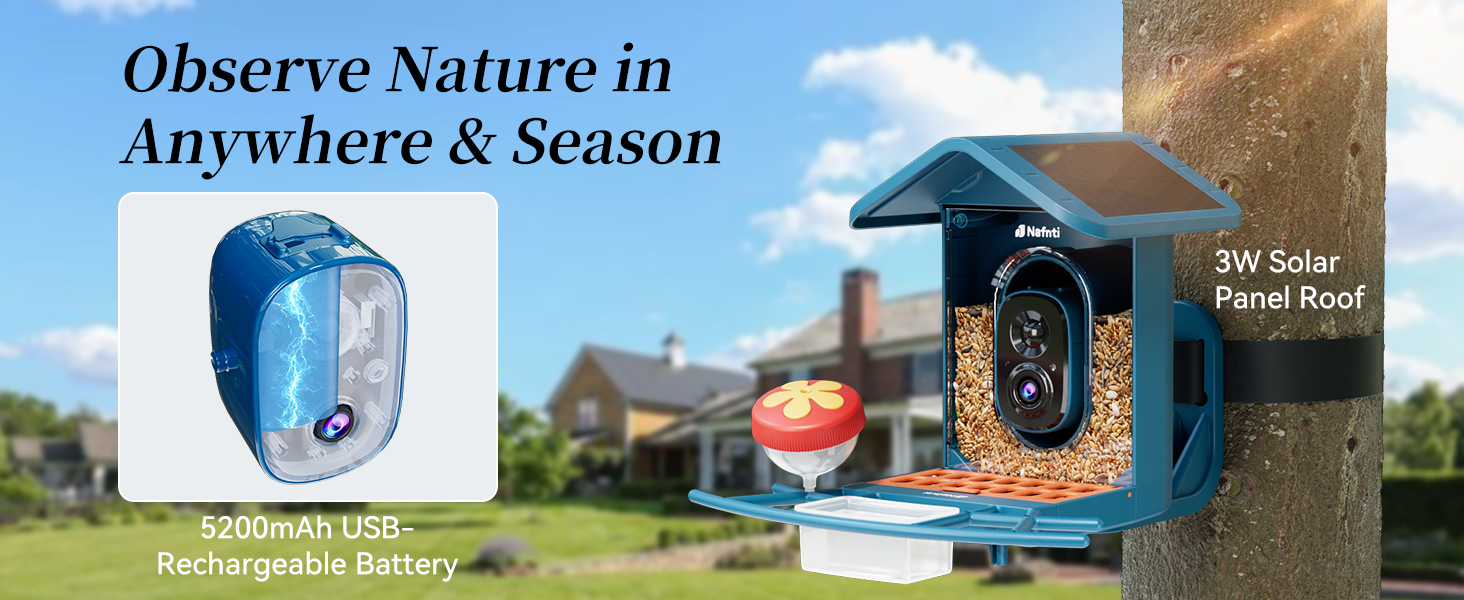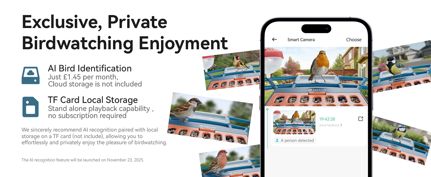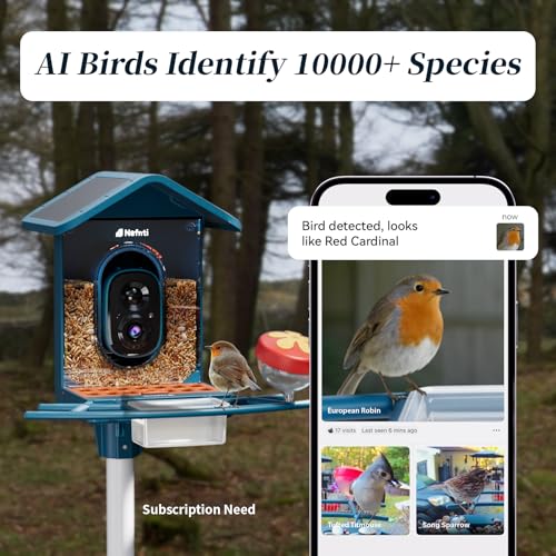 【Powerful AI Bird Recognition】Say goodbye to traditional birdwatching, traditional bird identification often requires poring over a large number of guidelines. But Nafnti smart bird feeder with camera is capable of identifying 10000+ bird species, recording these moments, and supporting playback—If you require this feature, the monthly subscription fee is £1.4, but we offer a 30-day free trial period.