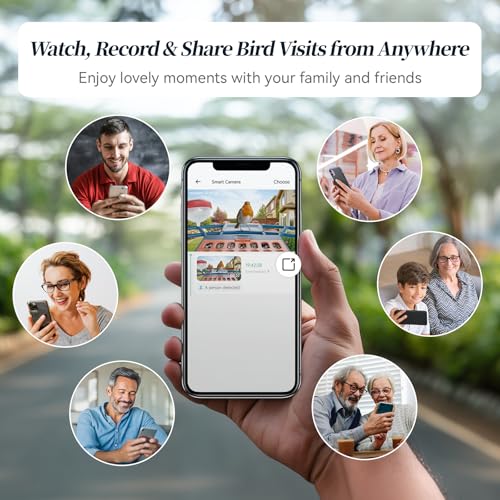 【Support One-click Share】It can share adorable bird videos to social media with a single tap. The bird feeder with camera also supports simultaneous online viewing on up to 4 devices, strengthen your family's bond, enjoy birdwatching with your family. For storage, you can use an TF card (max 256GB, not included) or take advantage of 3 days of free cloud storage.