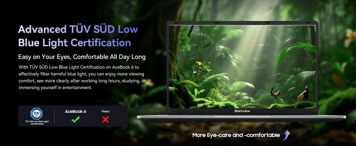- 【Perfect Back-to-School Gift & Daily Use】Whether back-to-school season or daily life, Blackview Acebook 6 laptop fits seamlessly—ideal for students, remote workers, or anyone needing reliability. For students, its 15.6" TÜV eye-care display eases long study sessions; 16GB RAM handles notes, research, and courses effortlessly. Lightweight and compact, it slides into backpacks for campus or commutes. Beyond school, it excels at work, streaming, and more—practical year-round. Sleek and functional, it’s a thoughtful gift for anyone seeking efficiency and portability, no matter the season.
