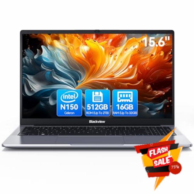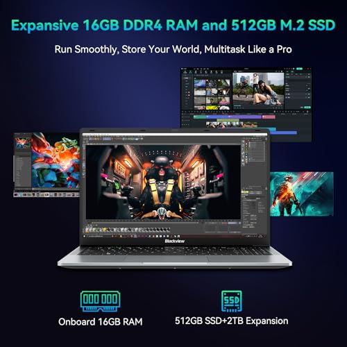 Blackview Laptop 2025, Laptops Computer for Business Student, Quad-Core N150 (Up to 3.6GHz, Beat N5095/ N95/N97/N100), 16GB DDR4 512GB SSD, 15.6” FHD IPS TÜV Screen, 100W Type-C Fast Charge, 4K HDMI