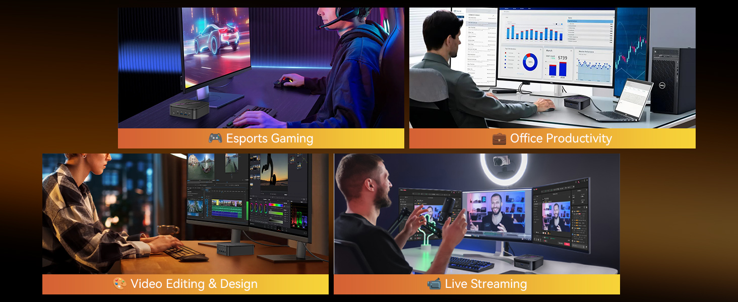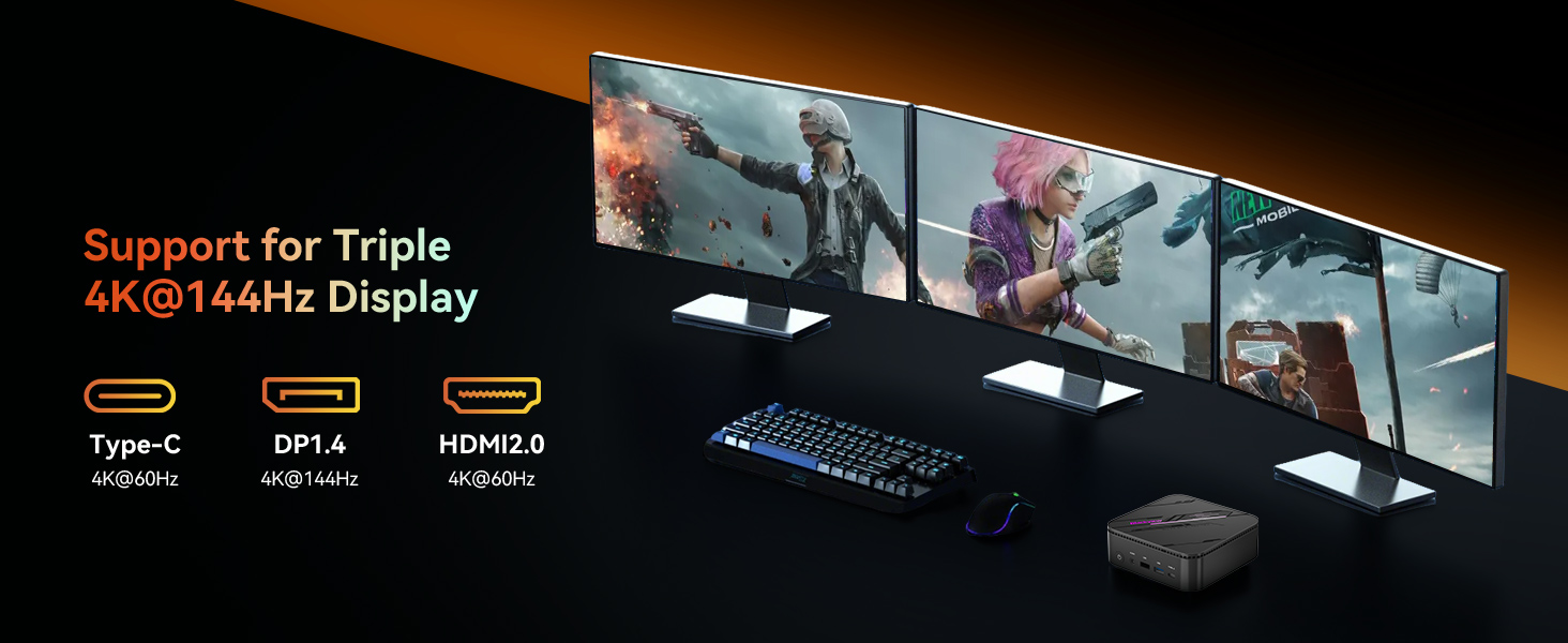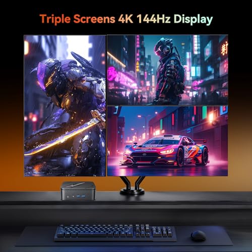 - ️ [Triple 4K Display Setup for Ultimate Multitasking & Immersion] This Desktop computer Elevate your productivity and entertainment with stunning triple 4K output capabilities. Support for HDMI 2.0 (4K@60Hz), DisplayPort 1.4 (4K@144Hz), and a full-function Type-C port (4K@60Hz) allows you to create an immersive multi-monitor workspace or gaming rig. Ideal for financial traders, content creators, and sim gamers who require expansive screen real estate and high refresh rates for smooth, tear-free visuals. Mini computers Unleash your creativity or dominate the competition with crystal-clear detail across every display.