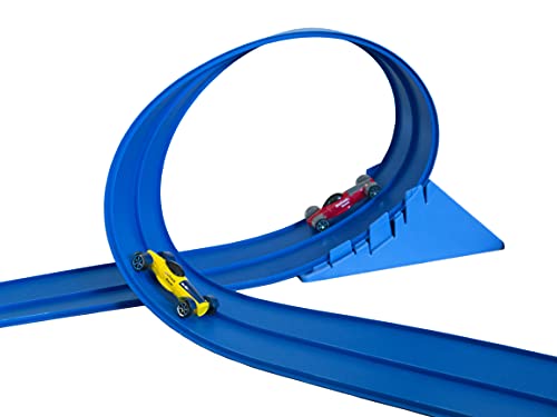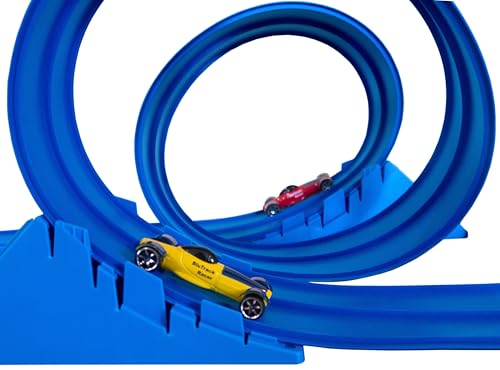 New 2026 Model! 15% more material than our pre-existing models! 15 feet of highly flexible two-lane racetrack. Blu Track allows for custom racetrack configurations due to the flexible material. Set up and tear down within 30 seconds; no assembly required. Easy to move and store. No small parts. Additional Blu accessories, including cars, are sold separately. Includes 1 – 15 ft coil of 2 lanes wide Blu Track Classic Series racetrack (Age: 3+) 1 BluTrack Track anchor 1 BluTrack Adaptable Hanger System 1 Suction Cup Compatible with Blu Track Racer cars or any other 1/64th scale die-cast vehicle. Note: Track performs best at 70 degrees Fahrenheit; if colder, the track will be stiff and can be warmed with hot water. If the track is too soft, it can be cooled in cold water. Additionally, rolling the track back and forth can help mitigate the tail end from curling. If the track has been kept in storage, weighing down the tail end can help excessive curling.