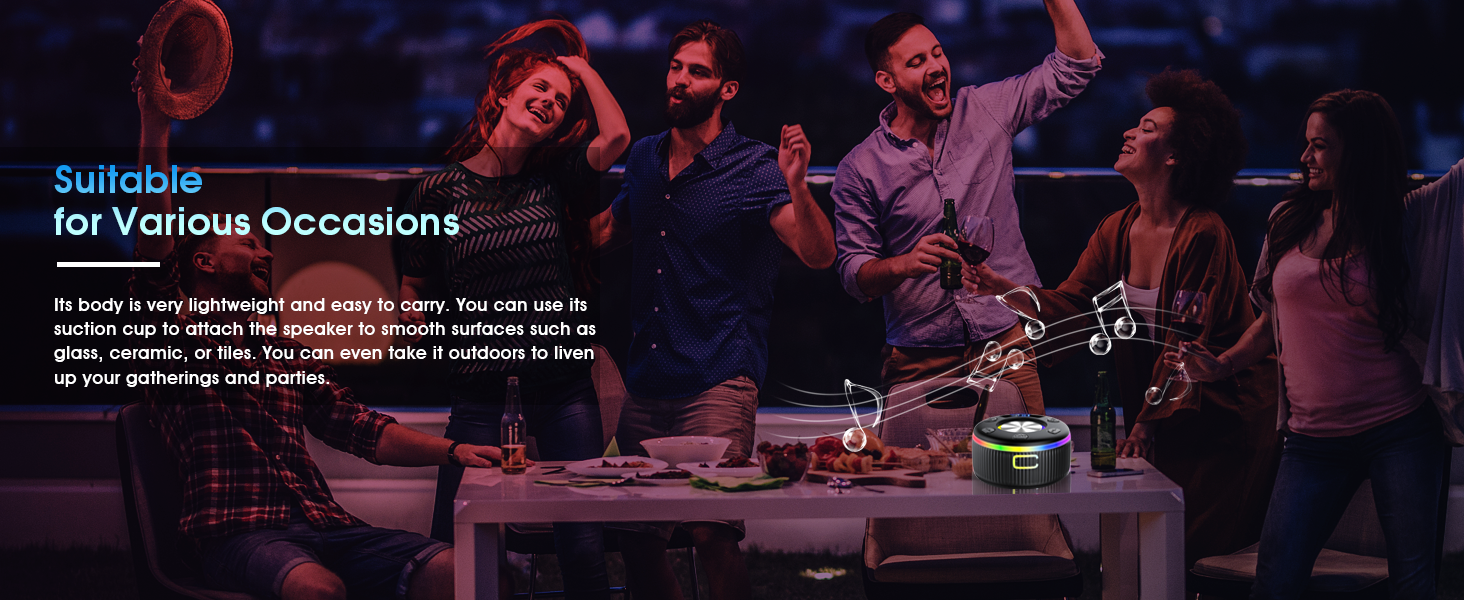 - IP7 Waterproof with Strong Suction Cup: Certified IP7 waterproof, this portable speaker boasts a silicone casing and interface design that ensure it’s shockproof, dustproof, and waterproof. Whether you’re poolside, in the bathroom, or any other damp environment, the mini speaker 's removable suction cup allows for secure attachment to bathroom tiles and mirrors. Enjoy your favourite tunes in any setting without fear of water damage.