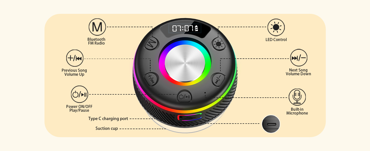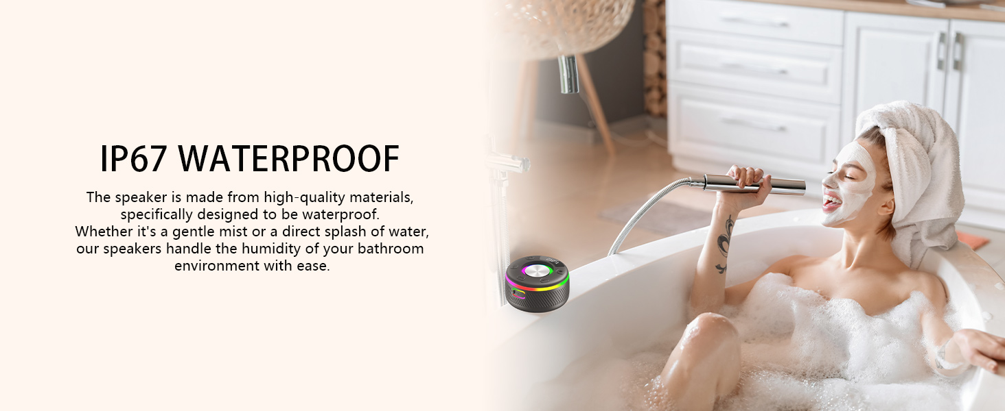 - IPX7 Waterproof & Durable: Designed to defy water, this shower speaker is constructed with premium materials that are both waterproof and durable. Whether it's a gentle mist or a direct splash, our speaker is built to handle the moisture of your bathroom environment with ease, ensuring longevity and reliability