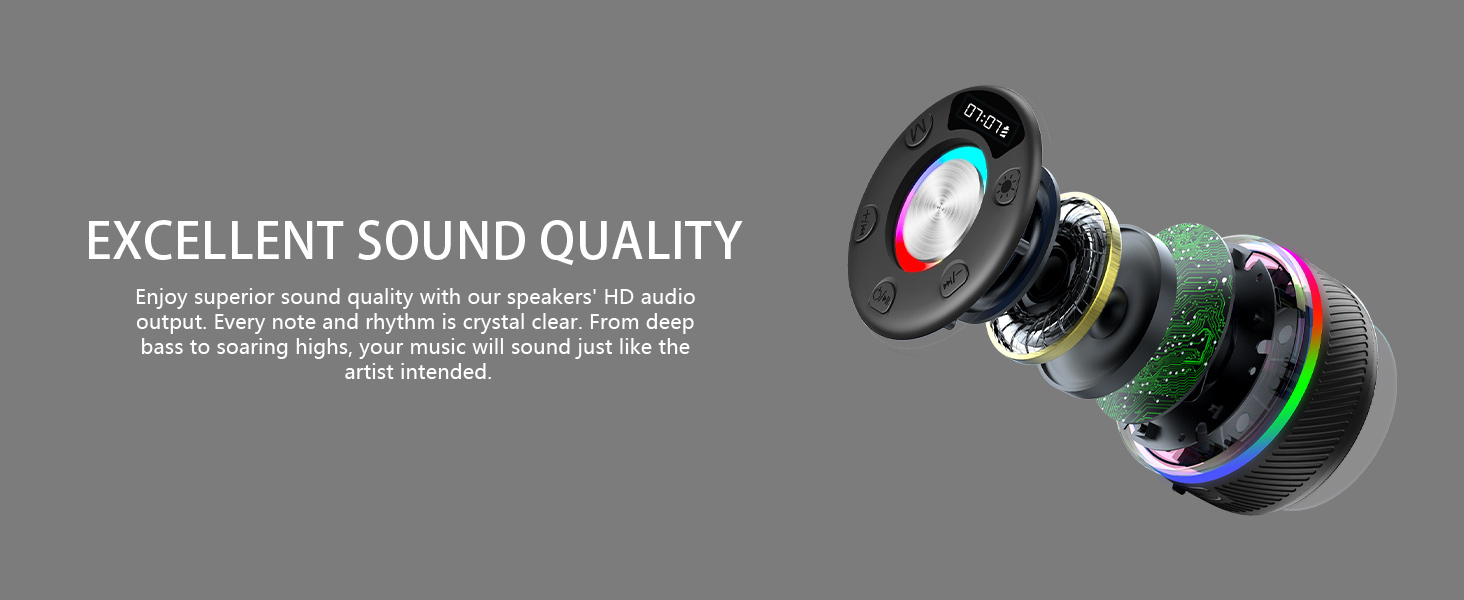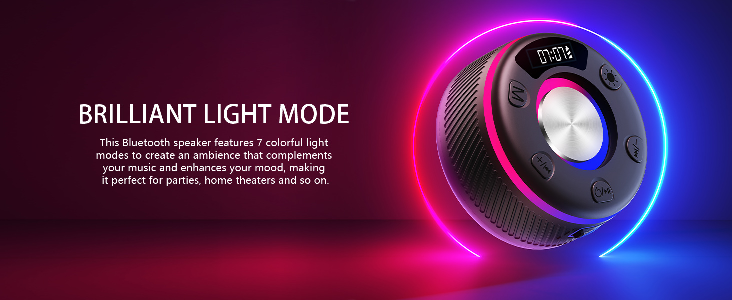 - Colorful LED Light: Bluetooth speaker wireless the integrated LED light display provides a spectrum of colors that can be set to change in sync with the music you're playing, creating an ambiance that complements your tunes and uplifts your mood.