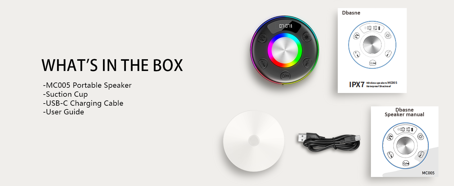 - Suction Cup Mount: Mini portable speaker Installation is a breeze with the powerful suction cup mount. Attach it to any flat surface in your shower—be it tile or glass—and the speaker will stay secure, providing you with an uninterrupted musical experience while you lather and rinse.