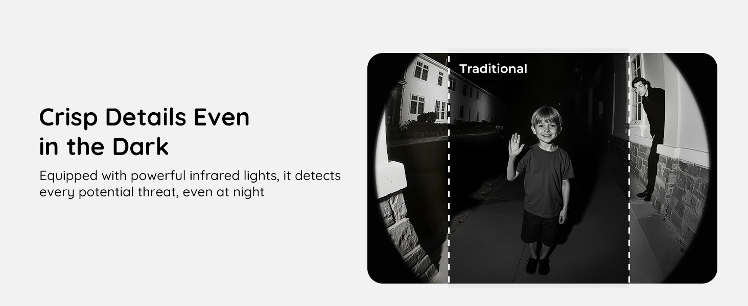 - [2K Ultra HD & Night Vision]See crystal-clear footage with the Doorbell Camera Wireless in 2K resolution that captures facial features, license plates, and packages in stunning detail. Built-in infrared night vision ensures you stay protected 24/7 — even in total darkness.