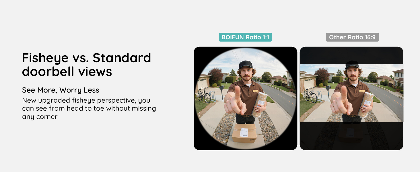 - [Ultra-Wide 180° Field of View]Capture everything that happens at your doorstep with a stunning 180° ultra-wide angle. Whether it's a visitor, a package, or unexpected movement, this Doorbell Camera Wireless gives you a full view from head to toe—no blind spots, no surprises.