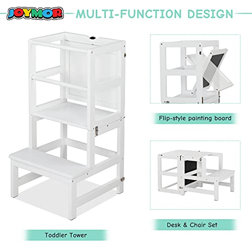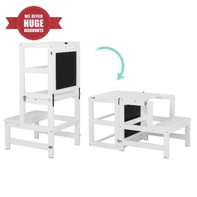 - 【MULTI-FUNCTIONAL Kid Tower】- 4-IN-1 design, this learning tower is not only a usual kitchen counter tower for kids to act as a little helper, it is designed with chalkboard for painting, can be folded into a table, and also can be took apart to be 2 parts as the side table or display racks for plants or books when kids grow up and no need it. A really useful furniture for your home.