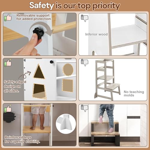 [Anti-Tip Safety Design]: Equipped with reinforced anti-tip legs on each side, this kitchen helper provides exceptional stability that eliminates tipping risks. Parents can have complete peace of mind while children play and learn safely.