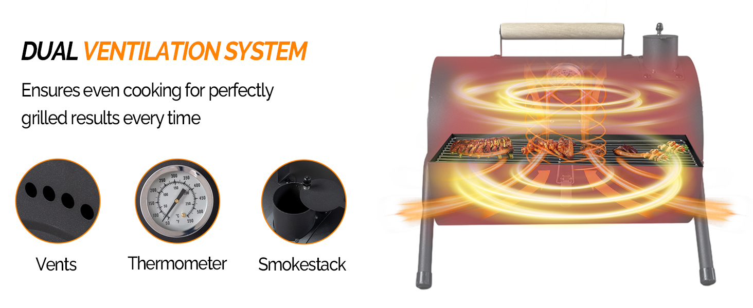 [Precision Airflow]: Side vents plus adjustable top chimney give Weber-portable-bbq-level control over temperature and smoke, turning the grill into one of the tastiest outdoor barbecues & smokers in its class.
