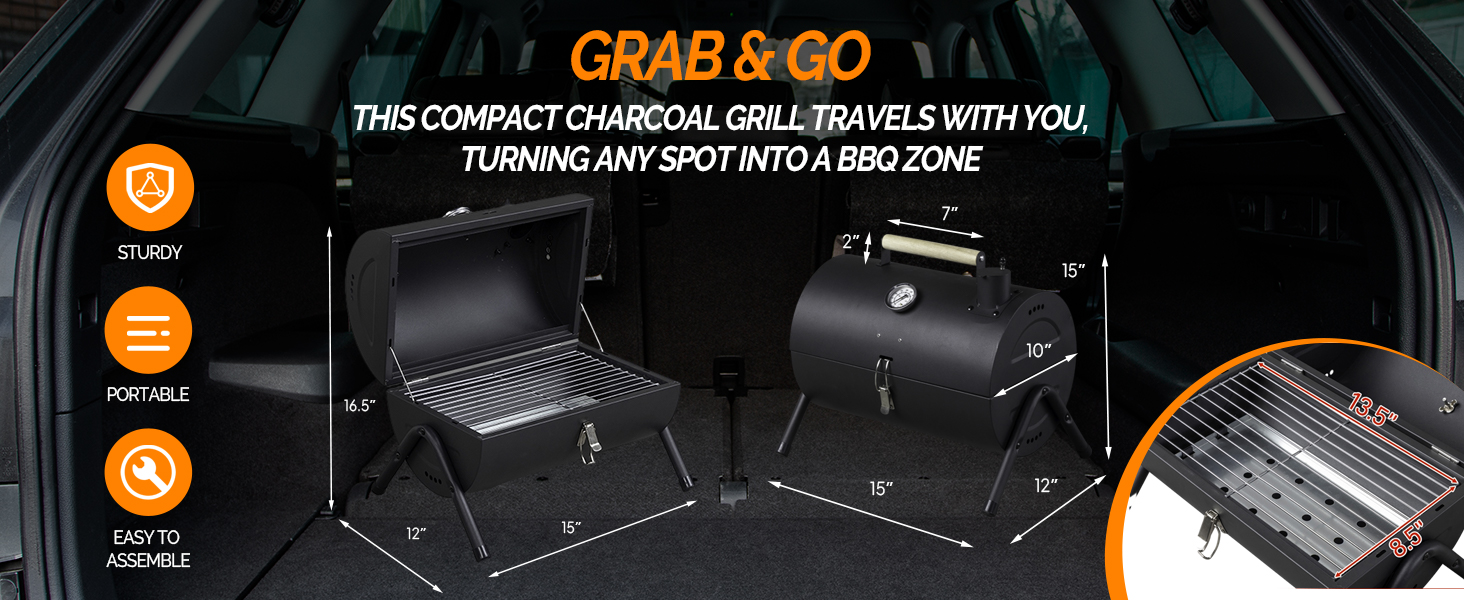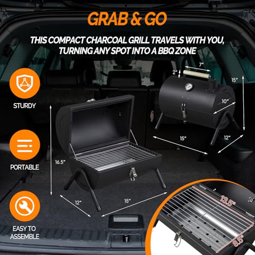 [13.5" x 8.5" Cooking Grid]: Despite its brief-case size, the grate fits 6 burgers or a stack of veggie kebabs—ideal for 2-4 people who want smokers-and-grills flavour without firing up a full-size rig.