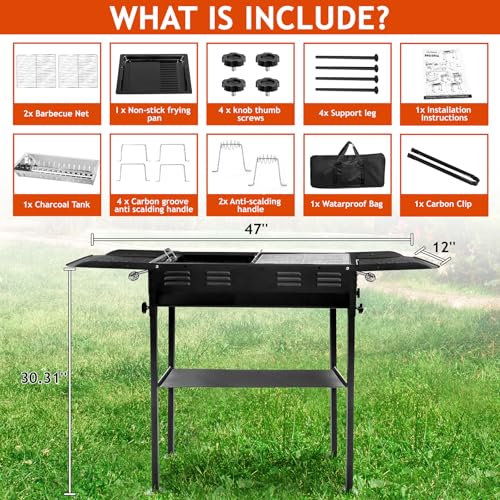 - Spacious Charcoal Tank: Equipped with a large capacity charcoal tank, separate high-temperature charcoal trough, and anti-burn handles, this grill is easy to clean. The detachable grill body ensures hassle-free maintenance, keeping your grilling area clean and ready for the next use.