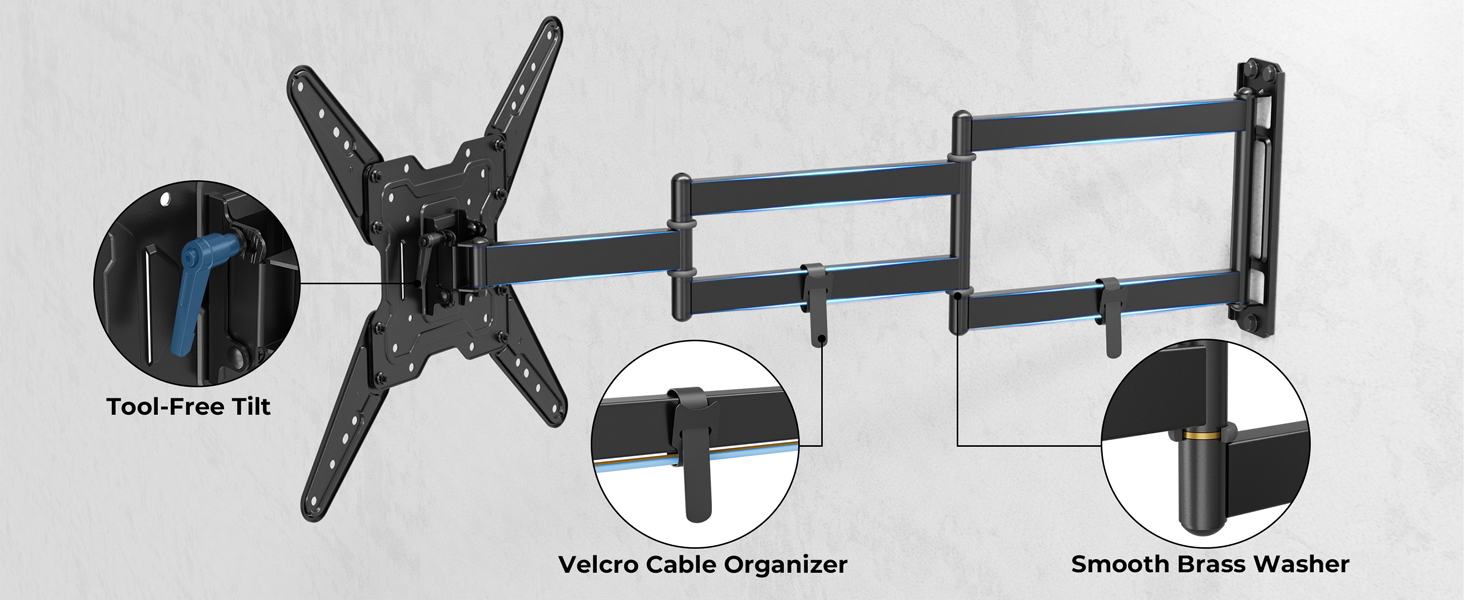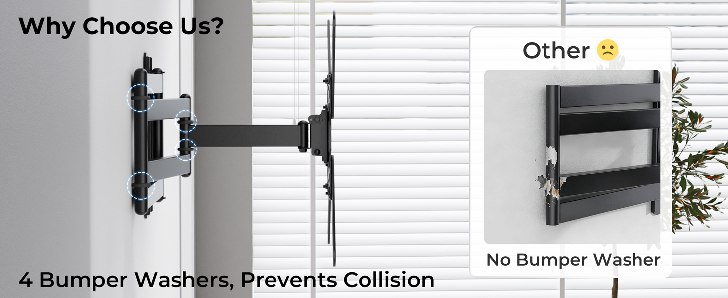 Built for long-lasting reliability, this tv wall mount combines tool-free adjustment, impact protection, and reinforced support to deliver a smoother and safer mounting experience.