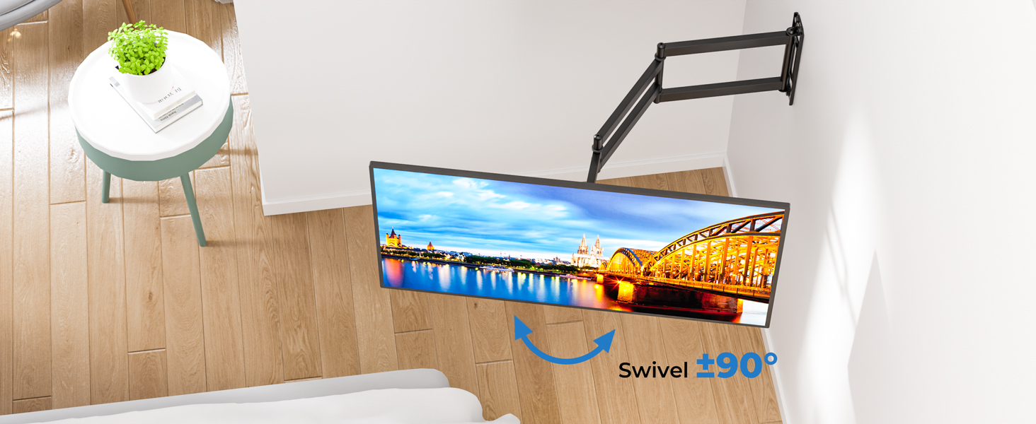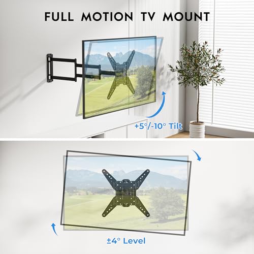 - ✅ FLEXIBLE VIEWING ANGLES – Designed as a tilt and swivel tv wall bracket, this full motion tv wall bracket offers ±90° swivel, +5°/-10° tilt and ±4° rotation for easy adjustment. It reduces glare and enhances comfort, ideal for living rooms, bedrooms, gaming setups or home cinemas, supporting shared viewing
