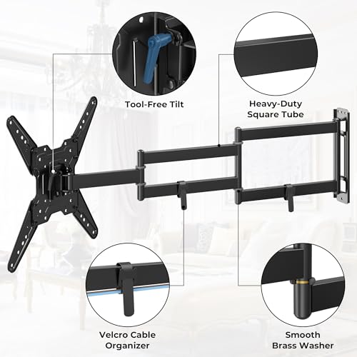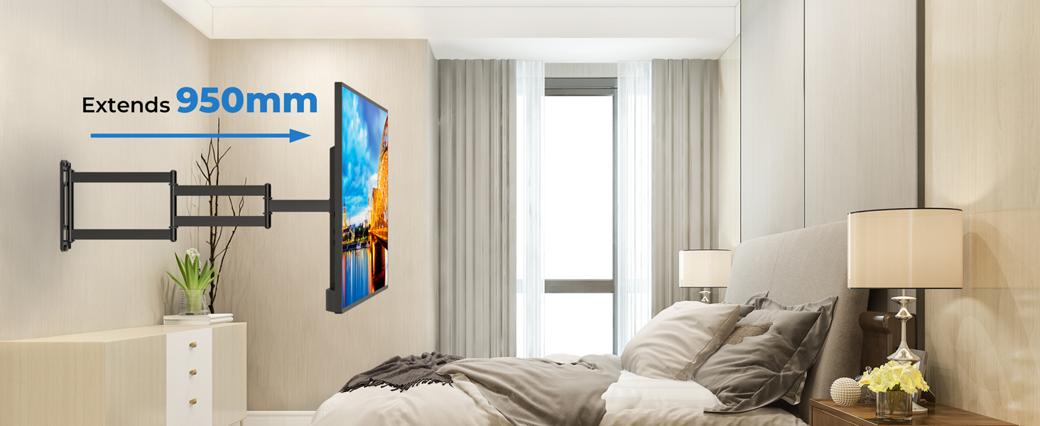 - ✅ EXTRA LONG EXTENSION & SPACE SAVING – Extending up to 950mm and retracting to 75mm, this swivel tv wall bracket with four joints offers smooth adjustments and saves space. Perfect as a corner tv bracket for wall edges, tight rooms or small flats, it maximises flexibility while keeping the screen close