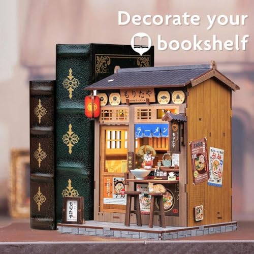 Book Nook Kit Late-Night Noodle Shop – 3D Wooden Miniature with Cre Lights, Insert Bookshelf LED Decoration,