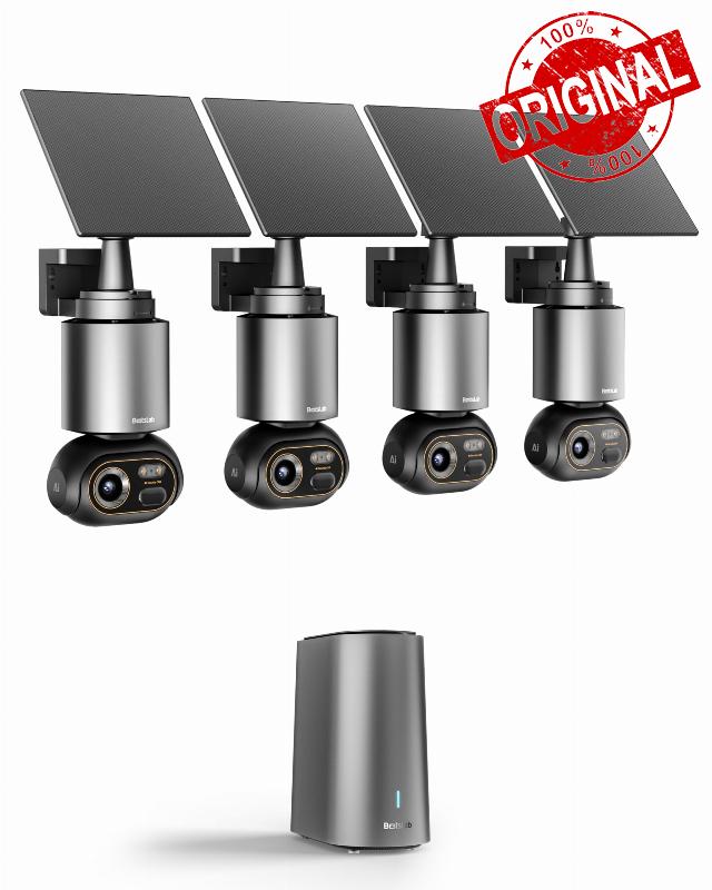 BOTSLAB 8MP Security Camera Outdoor Wireless 4 Cam-Kit, No Subscription, 4K 360° PTZ Solar Camera with WiFi Homebase, AI Recognition, Night Vision, 32GB Local Storage