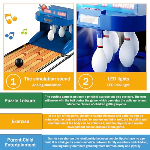 - 【INTERACTIVE FUN FOR THE WHOLE FAMILY】Enjoy parent-child bonding time with this interactive electronic bowling game. Supports both 1-player and 2-player modes—just press a button to start! Perfect for indoor play and strengthening family connections through friendly competition
