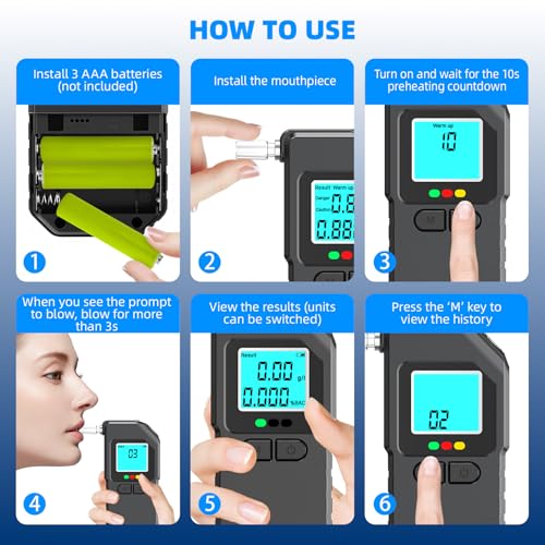 Multi-functional: The breathalyzer comes with 10 reusable mouthpieces, suitable for personal use, ideal for family gatherings, parties, and other events. Note: It is recommended to wait 20 minutes after drinking before testing, as it takes approximately 20 minutes for alcohol to enter the bloodstream from the digestive system. It is also recommended to wait more than 3 minutes between tests. Otherwise, the test results may be inaccurate.