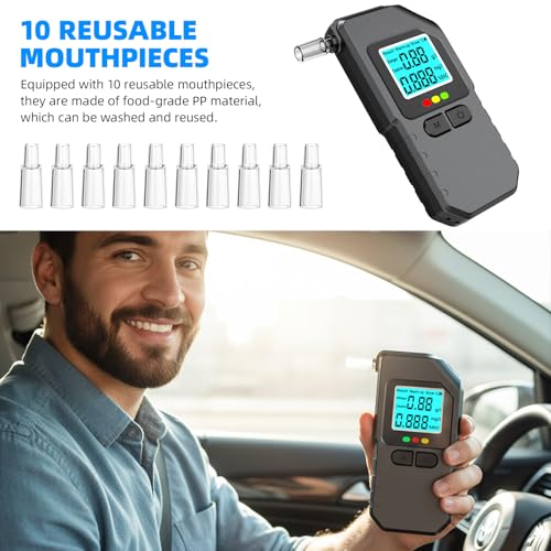 Breathalysers – Breathalyzer with 10 Reusable Mouthpieces, Portable Breathalysers for Euro Travel, Professional Breathalyser with LCD Digital Display, Breathalyzer for Home Party Use, MR1101