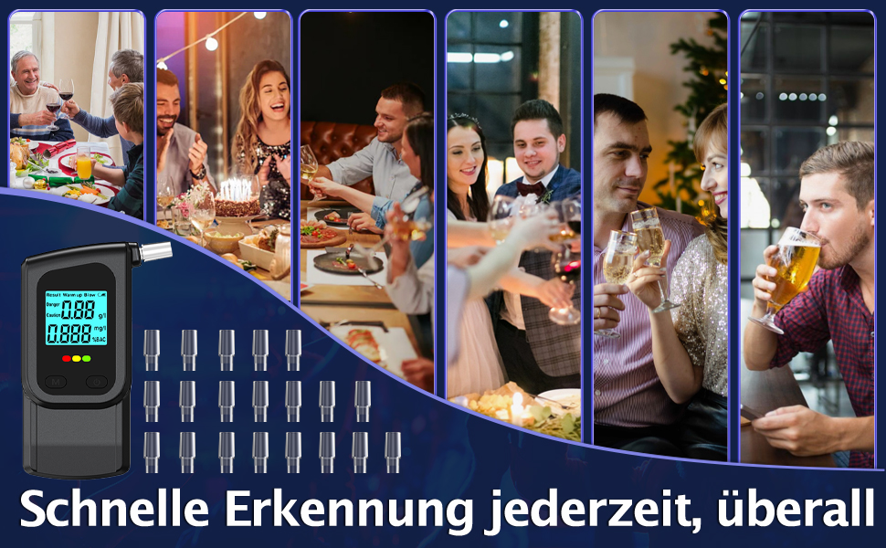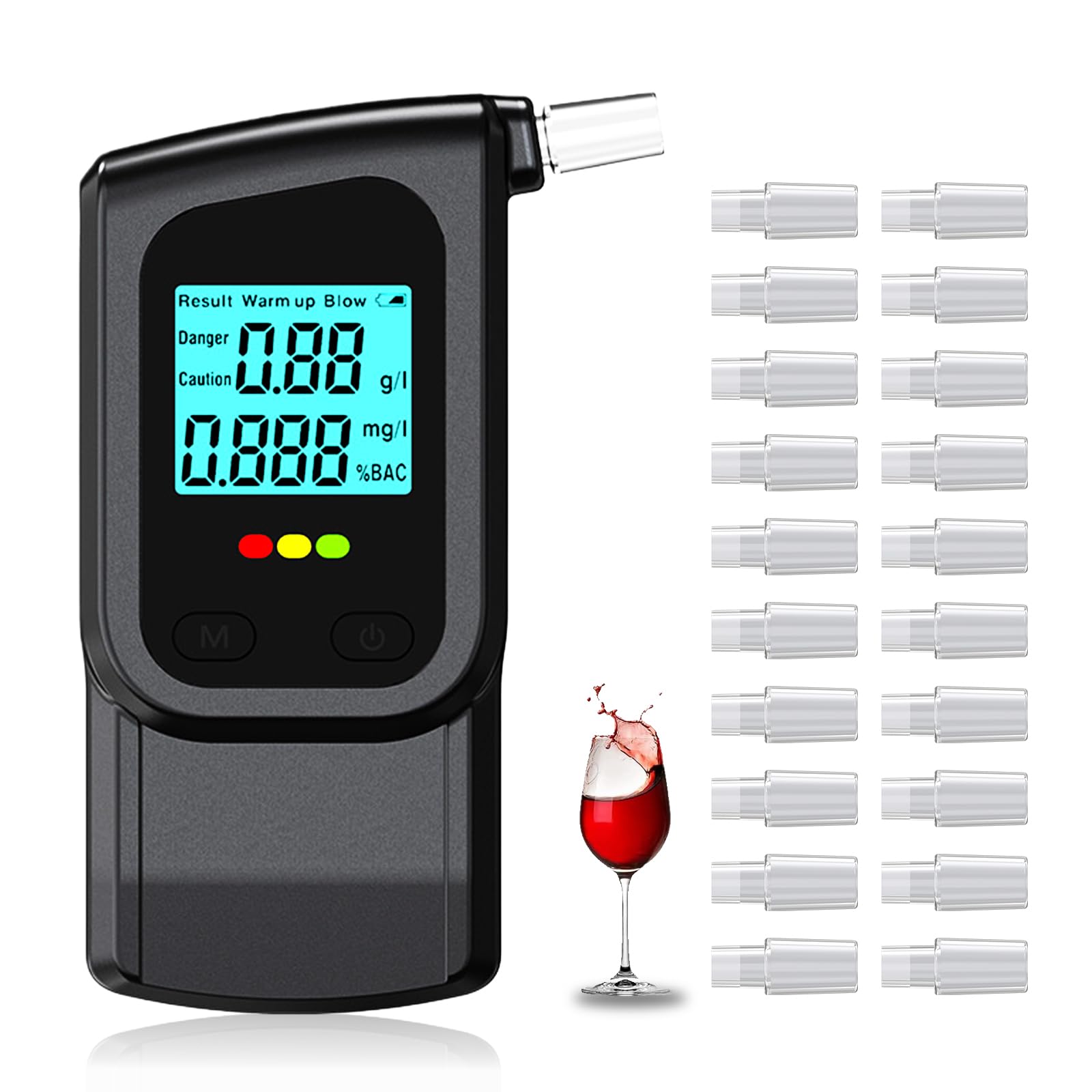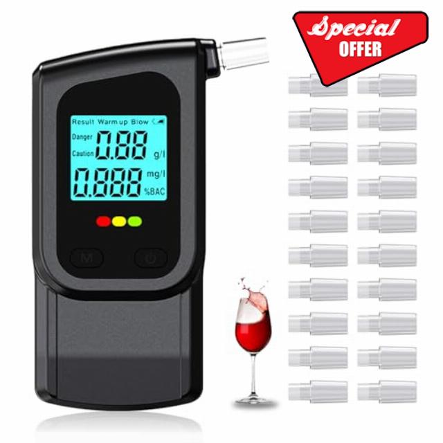 【20 Interchangeable Mouthpieces】Alcohol Tester comes with 20 mouthpieces, the mouthpieces can be cleaned and recycled. Super compact design, breathalyzer fits in your pocket and is easy to hold and carry wherever you go.