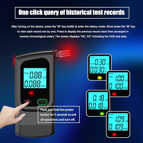 【Breathalyzer with Counter】The Digital Breathalyzer automatically stores your last 100 test results, helping you track and compare values over time. (Tips: After drinking, wait 20 minutes to perform the test, the result will be more accurate)