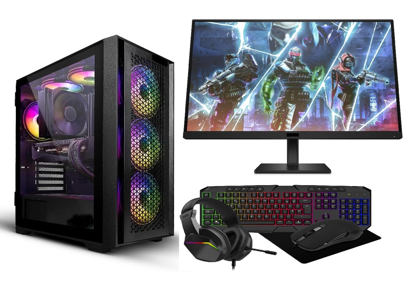 Budget Gaming PC 22″ Bundle Intel Core i5, 16GB Ram, 128Gb SSD + 1TB HDD. Windows 10, GT730 Graphics, WiFi, 6 Fan RGB Gaming Case, 22″ Monitor, Gaming Keyboard and Mouse
