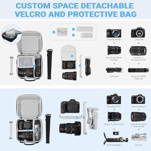 【Perfect Fit for Your Camera】 canon camera bag fit Canon EOS Rebel T7/R50/R6 Mark II/R100/R50V/T6/R8/R10/R5 Mark II/RP/R7/5D Mark IV/SL3/R5/T100/80D/XTi/T7i/T6i/T5/T5i/6D Mark II/70D/XT/T3i/T3/SL2/SL3/R5 C/M50/M50 Mark II/90D/M50 Camera, Sony Alpha ZV-E10/a6400/7 IV/6700/a7 III/FX3/ZVE10 II/A6100/7R V/7C II/7 IV/a6000 Camera, Nikon Z6 III/Z50 II/Z 6II/Z 8/Z 30/Z 7II/D7500/D850/D3500 Camera, Panasonic LUMIX FZ80D/G85 Camera, lens and tripod, provides a snug and protective.