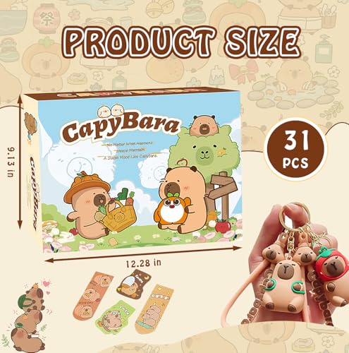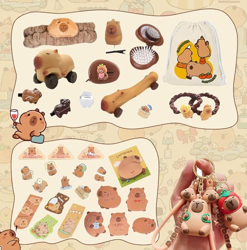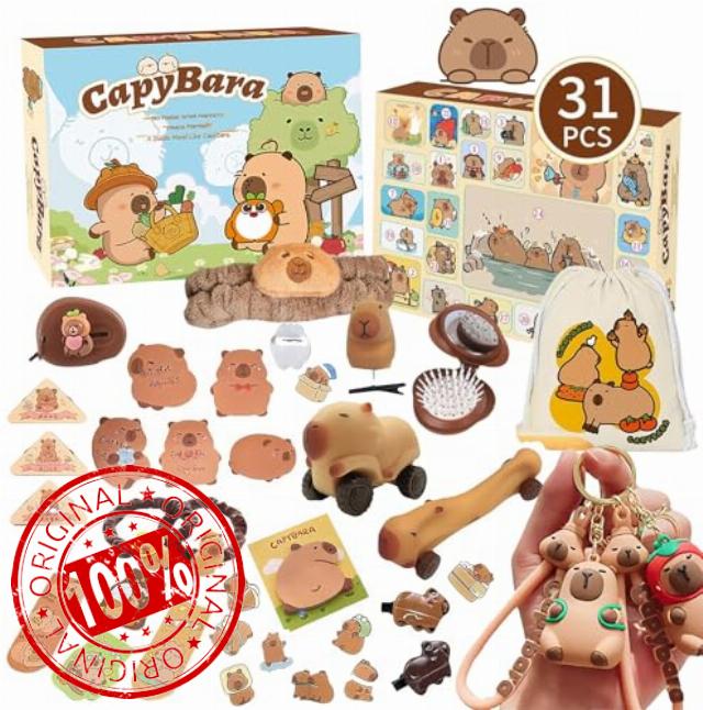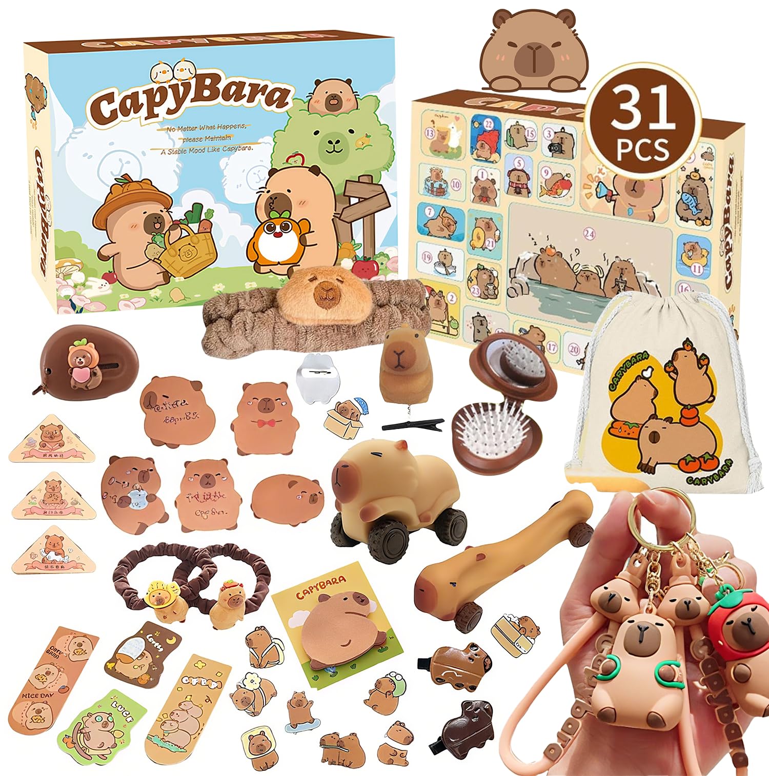 24-Day Unboxing with 34 Total Items:Enjoy a generous collection of 34 unique Capybara-themed items—including socks, keychains, clip bookmarks, plush toys, and sticky notes—spread across the 24-day countdown for extended delight and extra surprises.