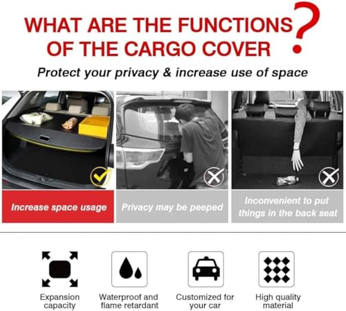 【Versatile Functionality】 Designed with versatility in mind, our car trunk cargo cover offers multiple functions to meet your diverse needs. Whether you're transporting groceries, sports equipment, or luggage, it provides a protective barrier to keep your cargo secure and organized, allowing you to travel with peace of mind.