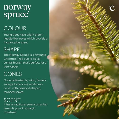 - Symmetrical shape: With its full, symmetrical form and vibrant green foliage, the Norway spruce tree is ideal for those wanting an authentic look for both outdoor Christmas trees and indoor displays.