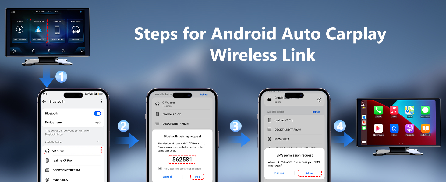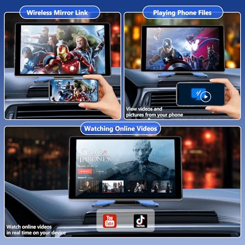 - Mirror Your World Wirelessly: Effortlessly cast your smartphone screen (iOS or Android) to the vibrant 7-inch Full HD IPS display. Enjoy videos, games, YouTube, and more on the bigger screen