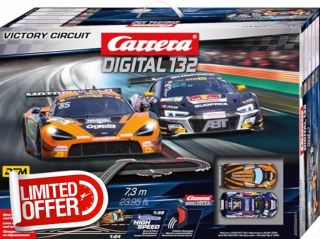 - Ultimate racing experience: Carrera Digital 132 'Victory Circuit' set offers realistic Formula 1 slot car racing on an 7.3 metre long track. With rear and brake lights for authentic driving pleasure