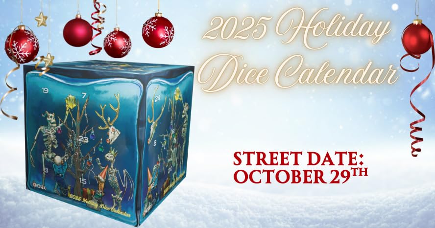 The holiday Seaon is finally here, With festivals wrought by demi-lich reindeer. A frew misfit adventures celebrate, Unaware of their unpleasant yuletide fate. While their situation isn’t verry nice, You get the joy of Chessex Holiday Dice