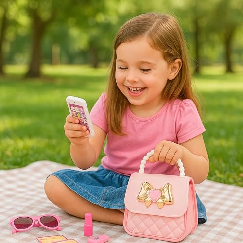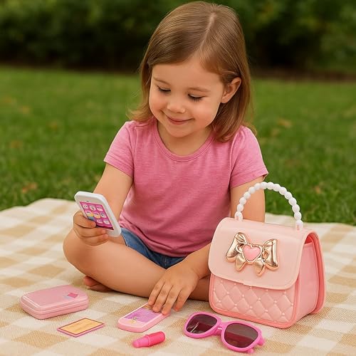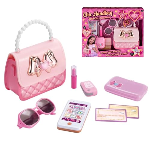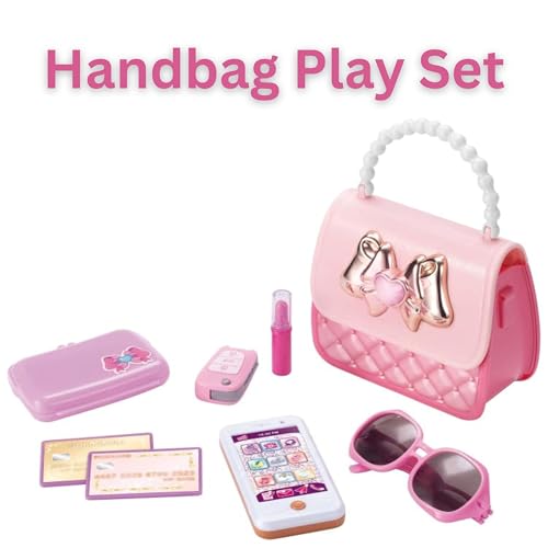 - Complete Handbag Play Set for Girls: This adorable Handbag Play Set for Girls includes a stylish light-up toy purse, toy phone, lipstick, sunglasses, toy keys, and girls pretend credit cards. Everything your little one needs for glamorous pretend play at home or on the go!