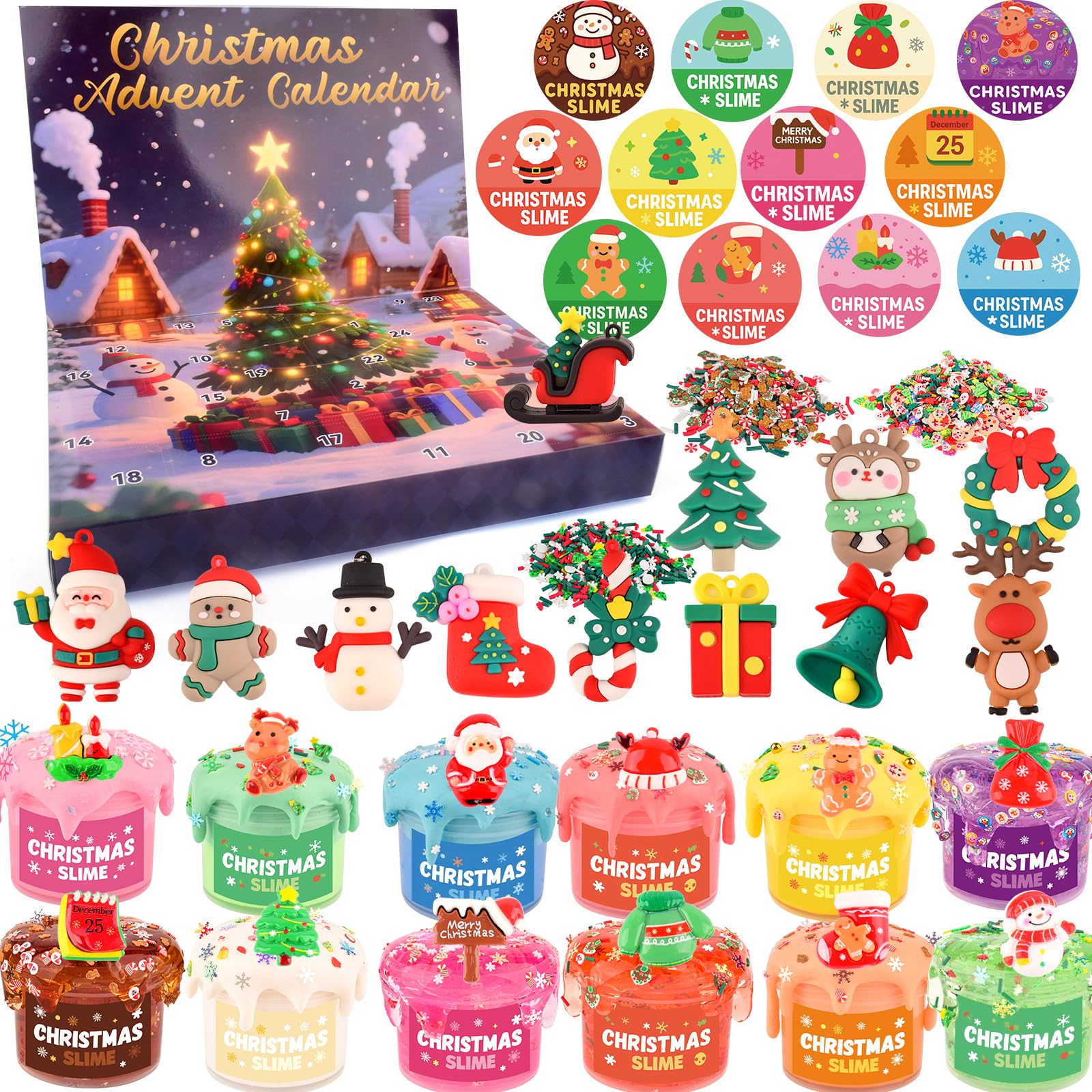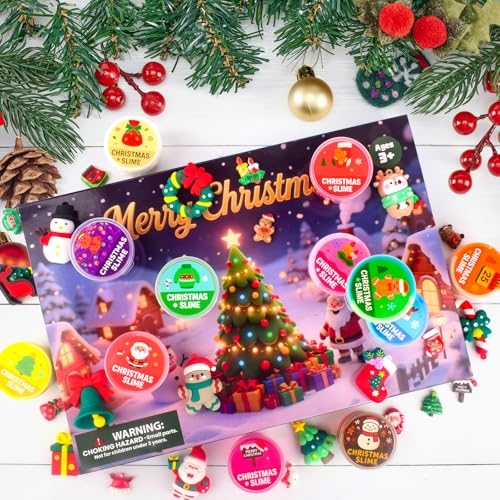 Christmas Advent Calendar Slime Fun: Celebrate the holiday season with this Christmas slime kit, perfect for advent calendar surprises! Count down to Christmas with a new each day, featuring festive colors and fun holiday decorations. It is an ideal addition to your Christmas advent calendar tradition.open a door to a Merry Christmas every day for 24 days