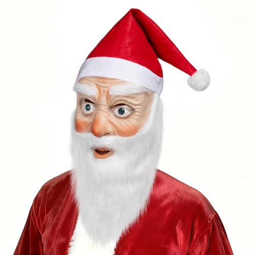 Christmas Santa Mask,Santa Hat and Beard, Latex Mask Cosplay Costume Accessories for Adult and Teenage
