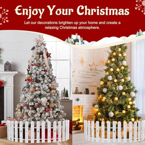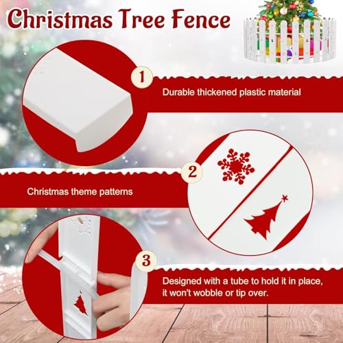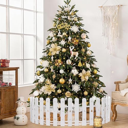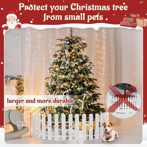 Christmas Tree Fence, 42 cm Tall White Decorative Fence, Christmas Tree Fence Protector for Kids, Dogs, Pets Freestanding Circle Barrier Around Artificial Real Xmas Trees, 28 Pcs