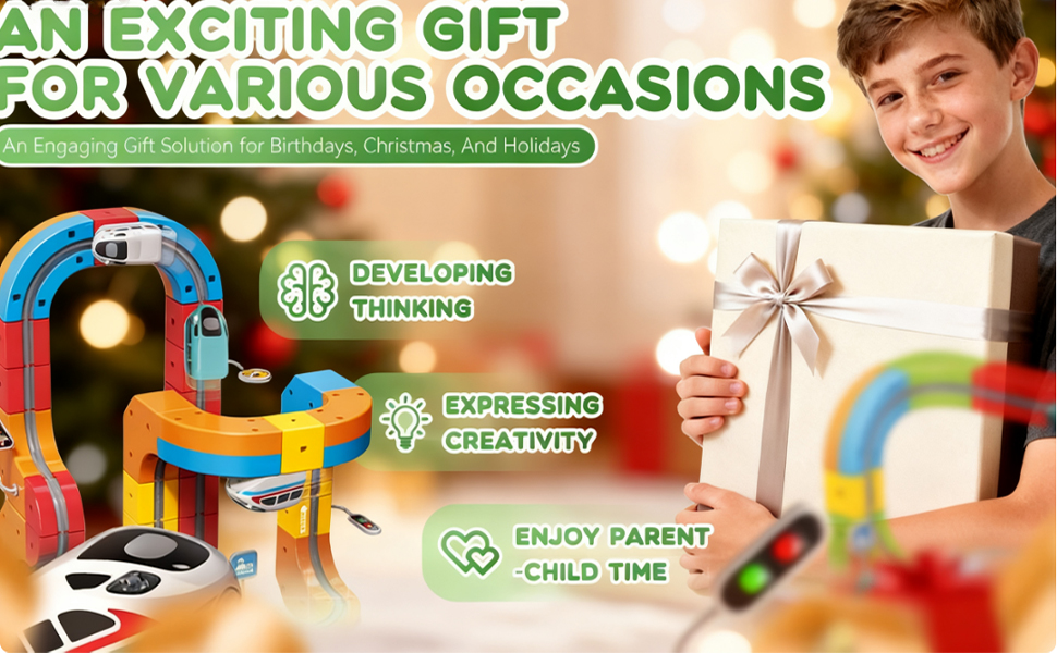 - 【Flexible & Creative Building】Electric Train Set features modular track components that allow children to design and build fully customisable circuits. With vertical inclines, curves, bridges, and multi-directional twists, it encourages imaginative play while developing spatial awareness and engineering skills—perfect for young minds who love to create