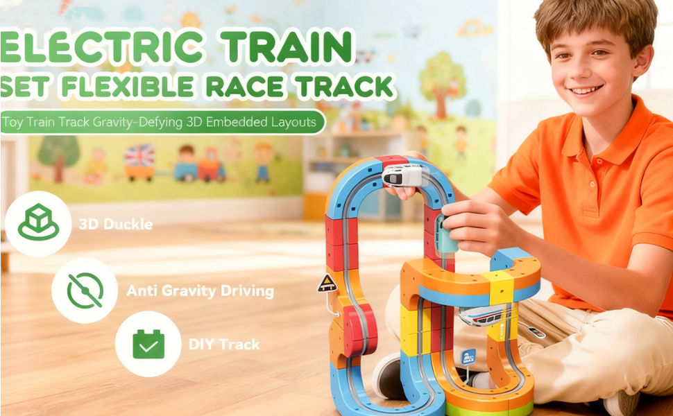 - 【Gravity-Defying Excitement】Watch the electric train perform thrilling stunts, including uphill racing, 360°loops, lateral moves, and inverted action. Designed with smooth and secure connections, the train glides effortlessly through dynamic layouts, offering non-stop fun and encouraging repeat play