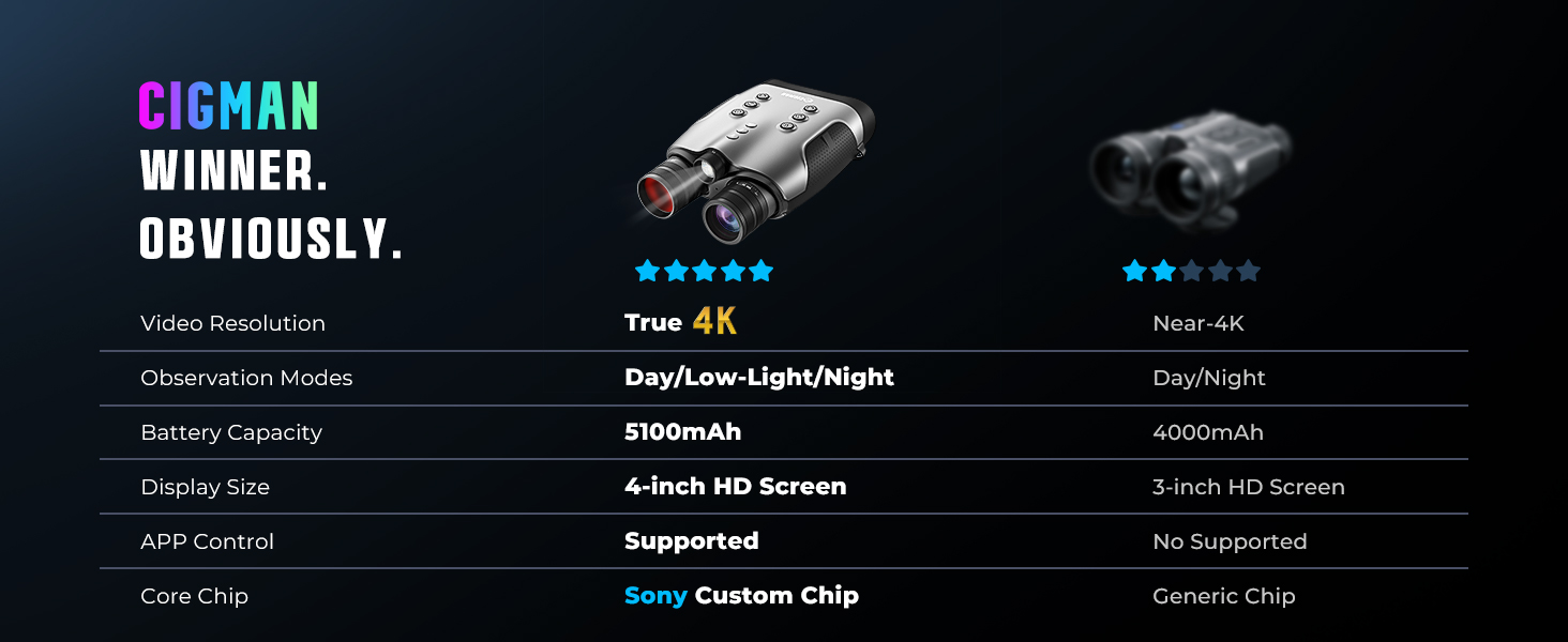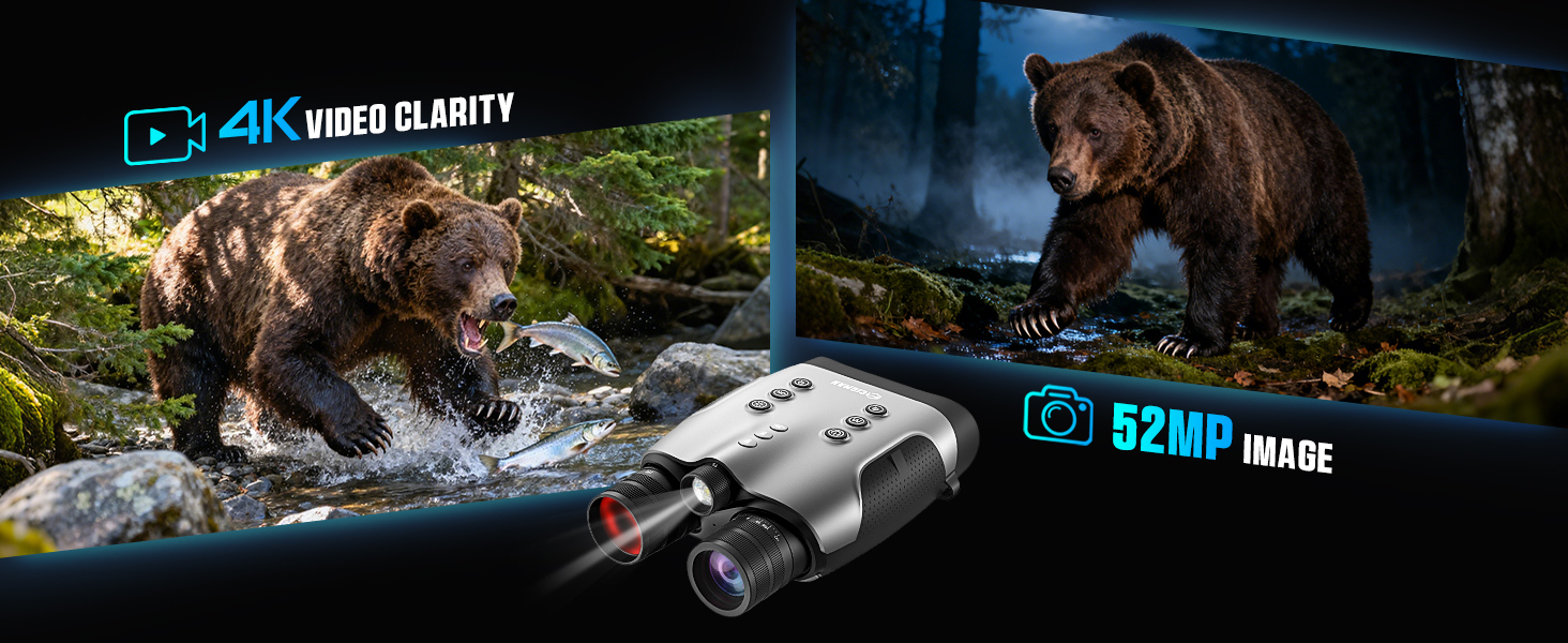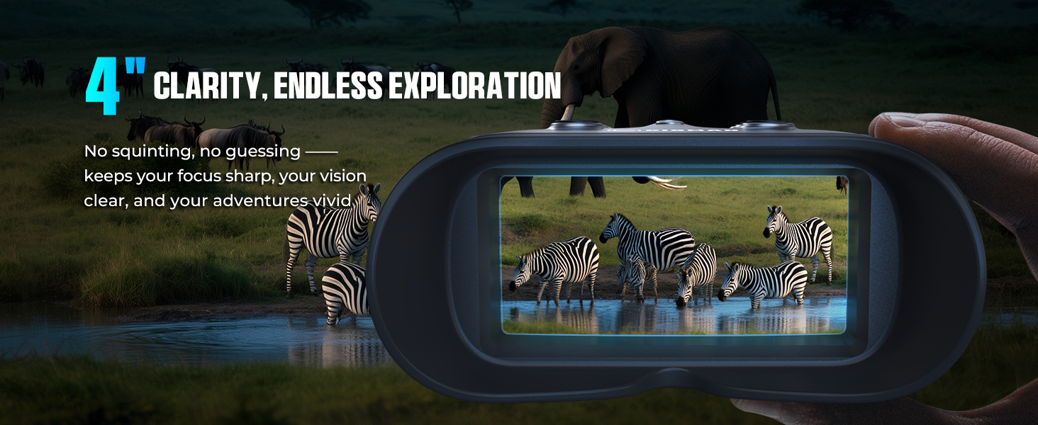 【True 4K Image Quality with 4-Inch Display】 Enjoy lifelike colour reproduction and superior clarity with true 4K resolution and a large 4-inch viewing screen. The advanced night vision scope design ensures every frame appears crisp and detailed, giving you an immersive viewing experience whether watching live or during playback.