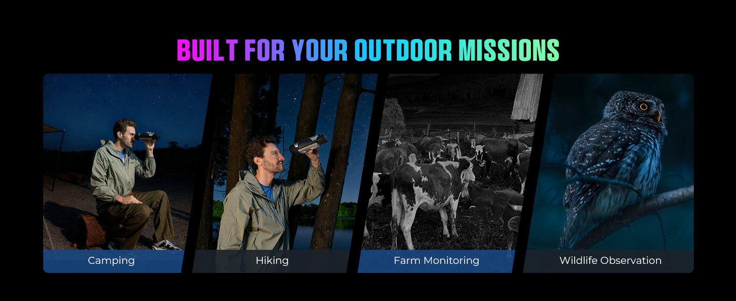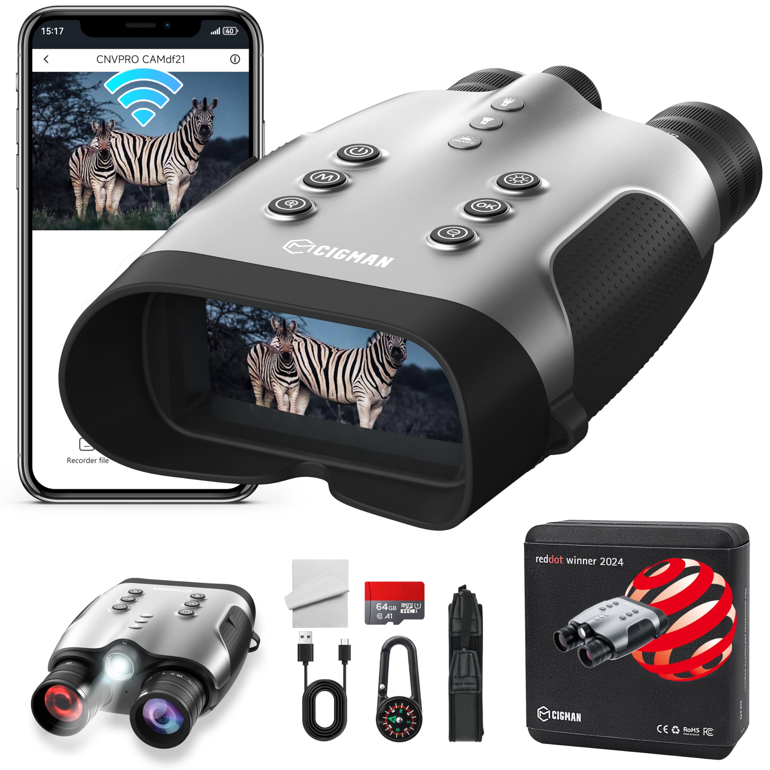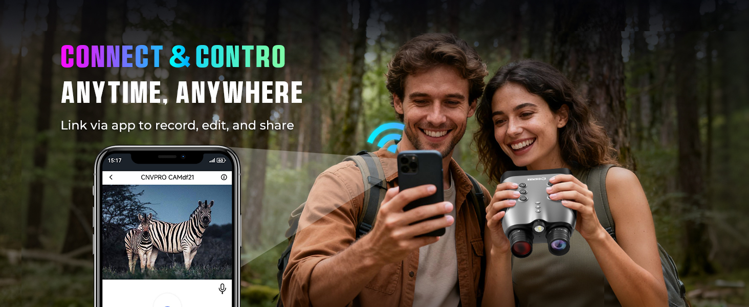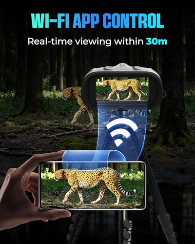 【Smart Wi-Fi Control up to 30M】 Easily connect your night vision goggles to your smartphone via built-in Wi-Fi for remote operation within a 30-metre range. Adjust settings, view footage, and transfer files wirelessly—ideal for field recording, night-time security, or sharing your adventures instantly.