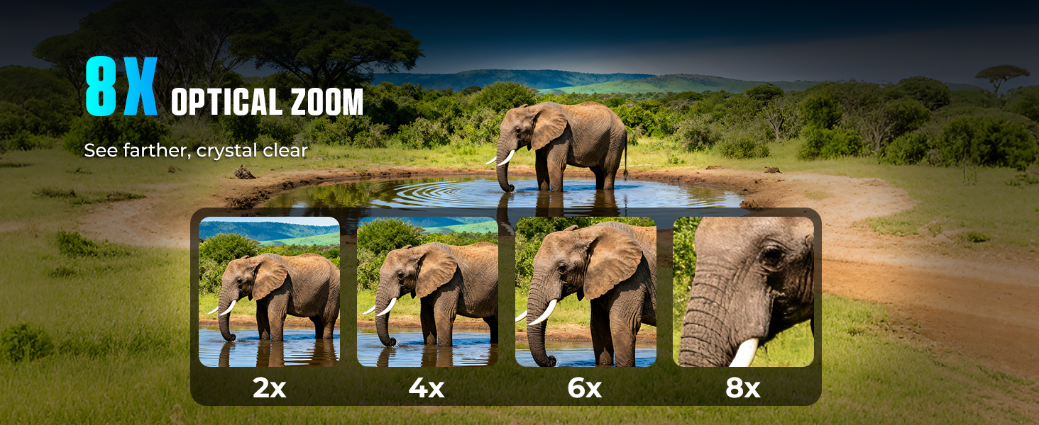 【Ultra-Long 1000M Night Vision Range】 Experience exceptional clarity with our upgraded night vision goggles, offering a viewing range of up to 1000 metres. The F/0.8 ultra-wide aperture lens captures more light for sharper images and enhanced detail, even in near-total darkness—perfect for wildlife observation, hunting, or night patrols.